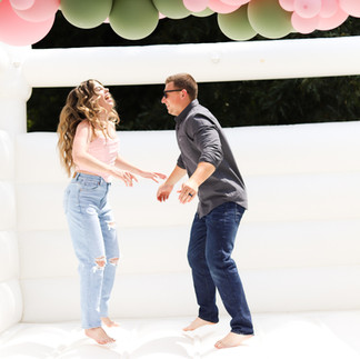 Your 1 year anniversary is a special one. Celebrating your first year of marriage and that is exactly what The Murphy's did! Kaitlyn had a specific vision for their anniversary session so we started with a casual, in-home session and popping a bottle of champagne! Next comes the fun part...a bounce house and balloon garland set up! Nothing makes me happier than when my couples are having fun during their sessions and these two certainly had a blast!